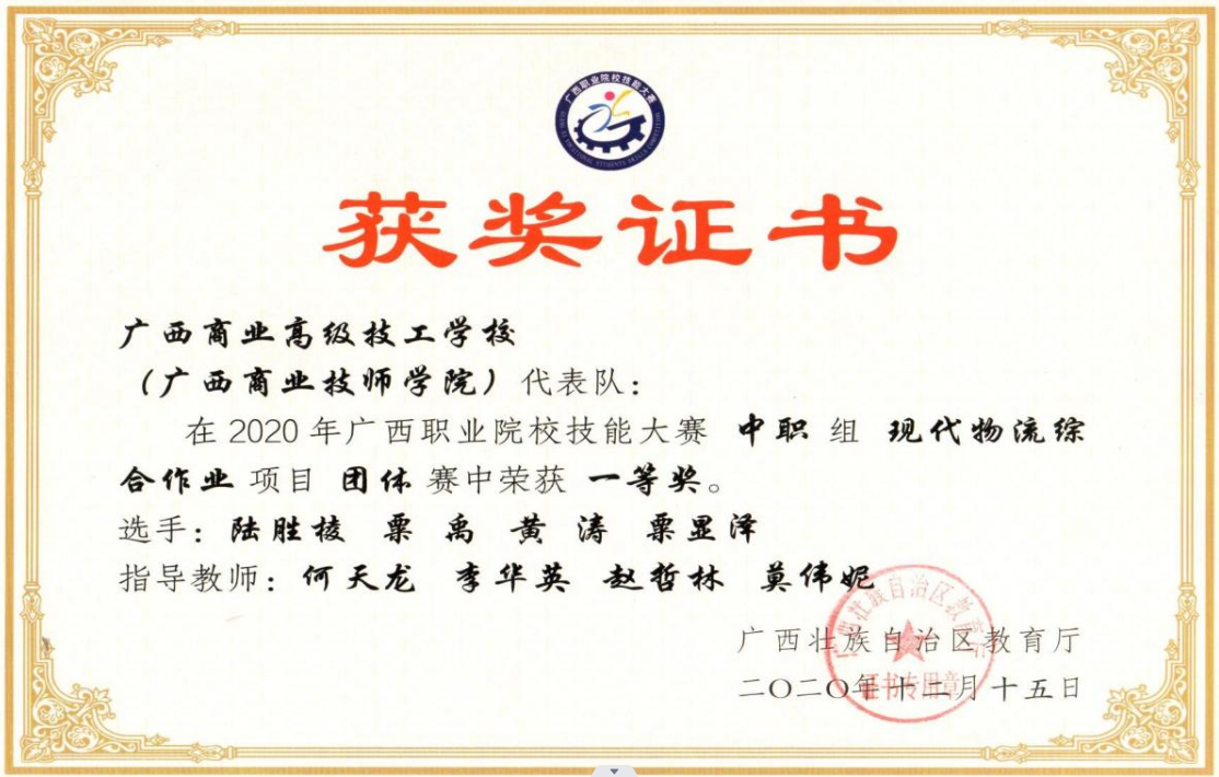 • 廣西職業院校技能大賽電子商務技術 區級一等獎